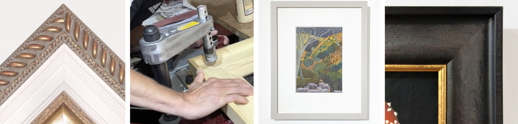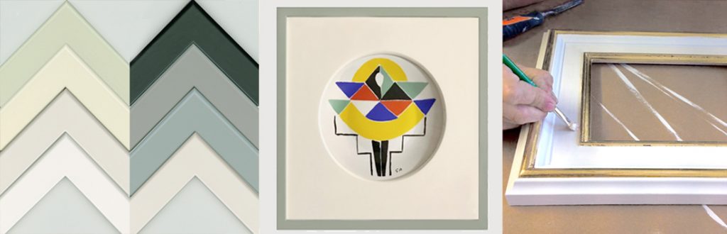 We can use a range of techniques including gesso, gilding, wood stains, and waxes to create a unique bespoke frame for your picture. Many of our customers are artists, who have specific framing requirements, and we frequently work with artists and other galleries to create matching sets of hand finished frames for exhibitions. We often deal with customers who have a particularly precious or valuable picture for which they’d like a totally unique bespoke frame. If you have a picture that you have something special in mind for, visit or contact us and we will be happy to discuss framing options with you.