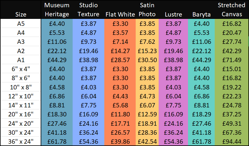 Our scanning and proofing service starts from £30.00 for artwork up to A3 size. For this we will scan and colour match to your original artwork, and produce you an A4 printed proof, and make colour changes if necessary. Once you are happy with your proof, you can order prints, or take away the digital image file.