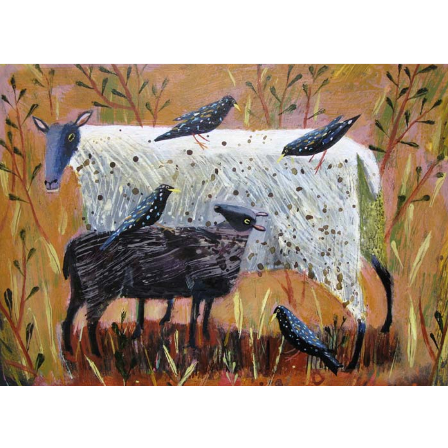 2595X Black Lamb and Starlings by Mary Sumner