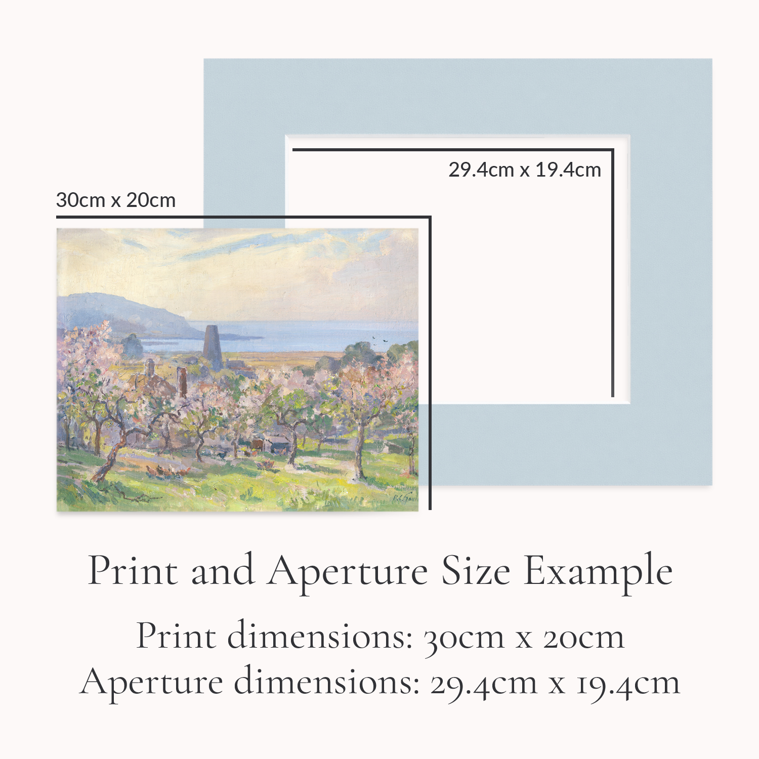Please choose your size category (based on the outside measurements of the mount), and whether you would like to order just the mount, or a mount, backing mount and cello wrap (B&C) from the drop down menu. Please note: the backing mount will be of standard thickness 1400 mount card. The cello wrap will come as a bag closest to the mount size, with any excess cello easily taped on the back for presentation.