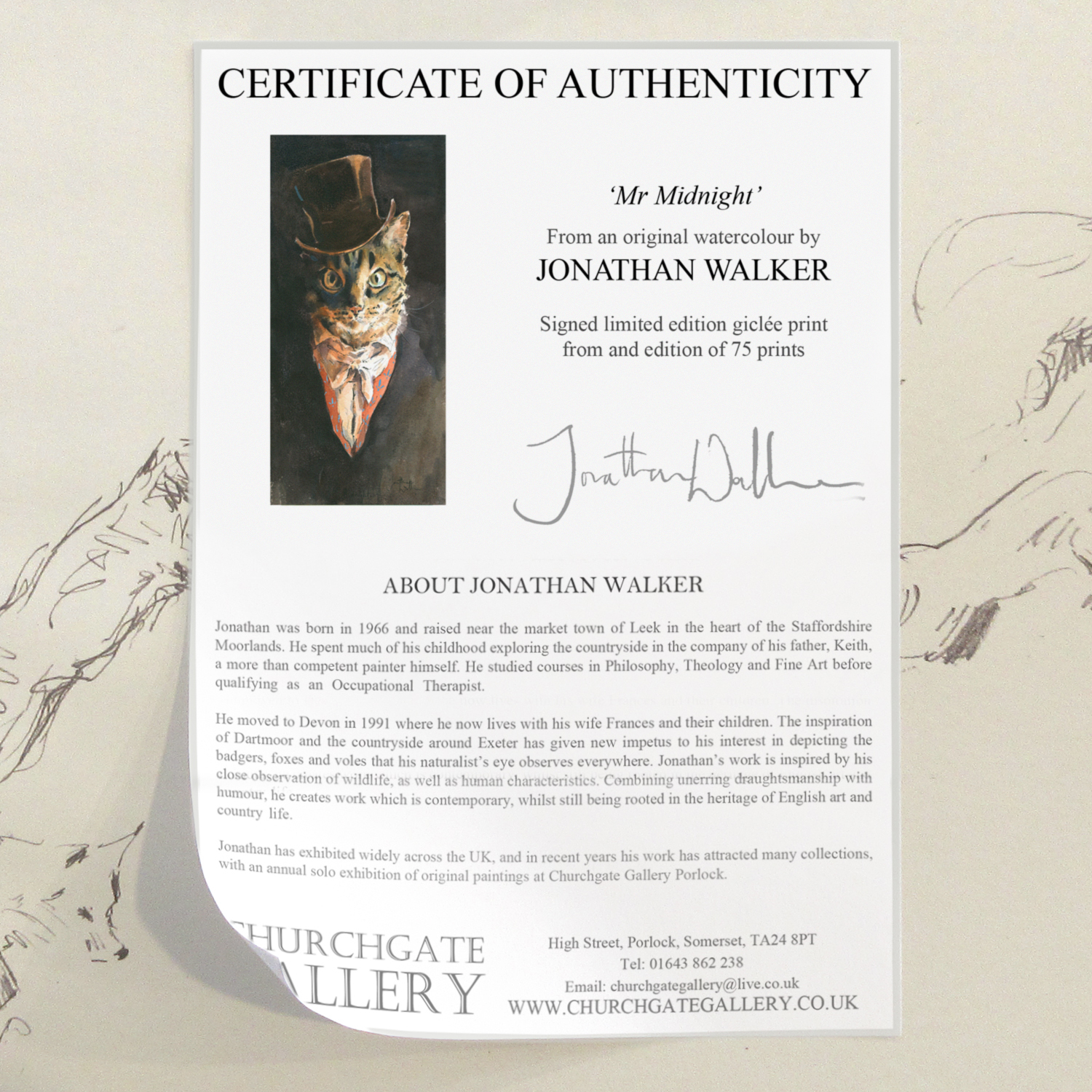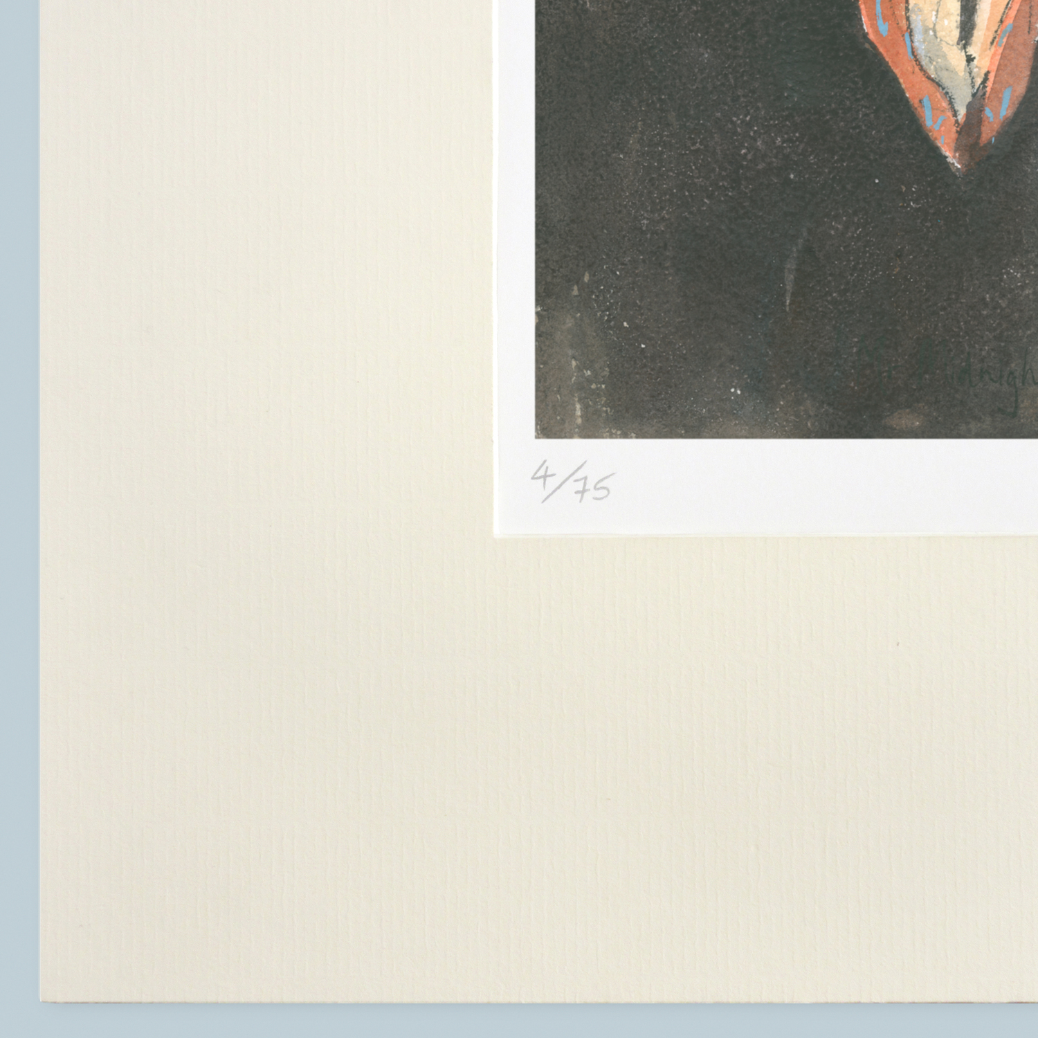 Printed onto 350gsm archival fine art paper, and available mounted in an off-white acid free mount, or mounted and framed. Each print includes a certificate of authenticity.