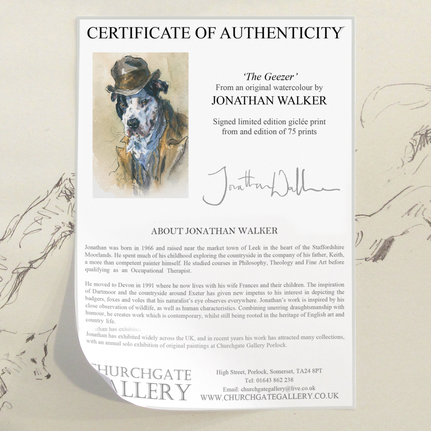 Signed and numbered limited edition giclée print, from an edition of 75, taken from an original watercolour by Jonathan Walker.